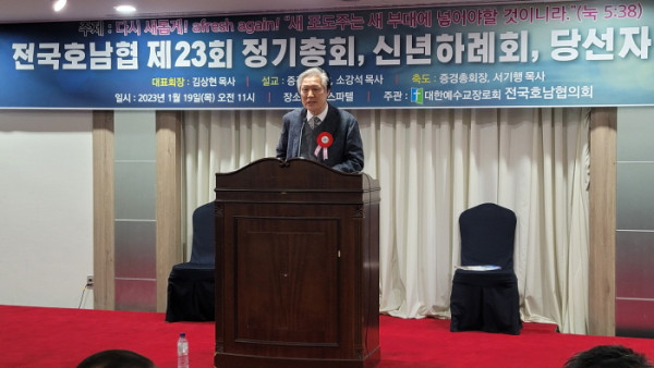 민찬기 목사는 2023년 전국호남협의회 대표회장을 맡은바 있다. 그런데 2023년 정기총회 주제가 아이러니 하게도 ‘다시 새롭게! afresh again!’ “새포도주는 새부대에 넣어야 할 것이니라”였다.
