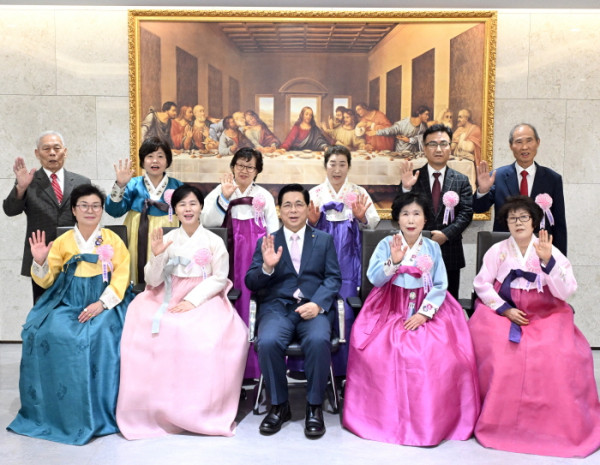 <사진설명 : 앞줄 가운데 이영훈 목사를 중심으로 시계방향으로 홍영옥(효부상) 윤영희(효부상) 김준길(장한 남편상) 오진순(장한 아내상) 권인화(훌륭한 어머니상) 김은숙(효녀상) 안상욱(효자상) 정락길(훌륭한 아버지상) 권잠순(장한 아내상) 성영임(효부상)>