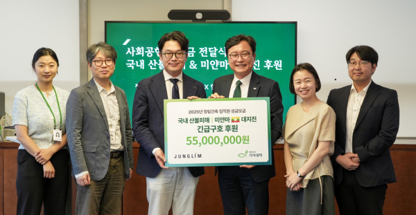 희망친구 기아대책, 정림건축과 국내 산불·미얀마 지진 피해 긴급구호 후원금 전달식 개최