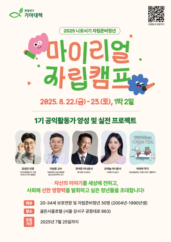 기아대책, 자립준비청년 공익활동가 양성 프로젝트 ‘2025 마이리얼자립캠프’ 참가자 모집