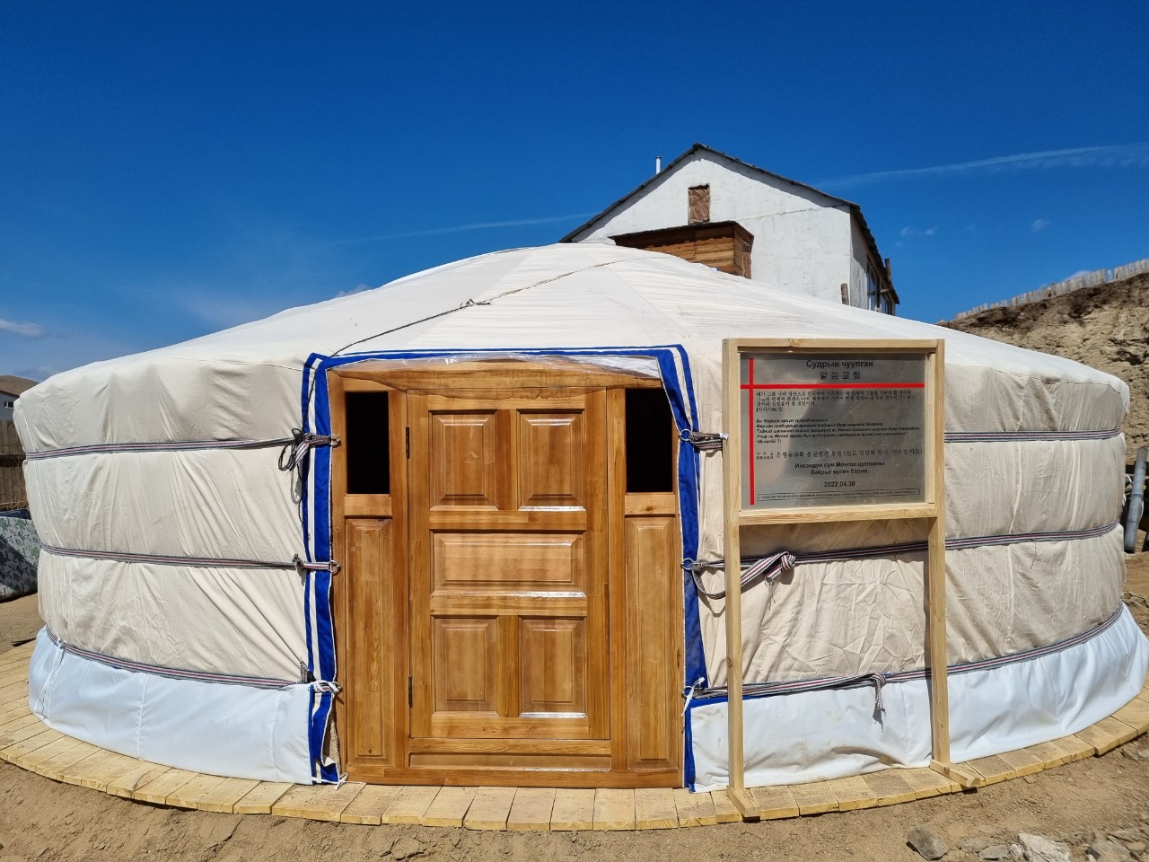 쏘드링 교회는 5년 전 개척하여 곳곳을 임대해가며 예배드려오다가 건축을 위해 성도들의 모은 정성으로 교회 부지를 마련하고 성전을 위해 기도하며 구하던 중 몽기총을 통해 한국 은행동교회 원로 임창희 목사와 안은정 사모의 후원으로 게르성전이 건축되고 4월 30일 봉헌예배를 드렸다.