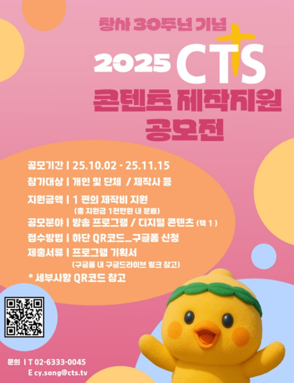 CTS, 창사 30주년 기념 「2025 콘텐츠 제작지원 공모전」 > 문화 > CDN Christian Daily News