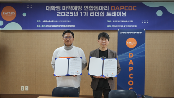사단법인 DAPCOC (Drug&Addicition Prevention Center On the Campus, 대학을위한마약및중독예방센터. 이사장 두상달)과 주식회사 필메디(대표이사 이병환)가 지난 1월 21일 서울유스호스텔에서 업무 협약을 체결하였다.