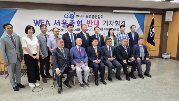 한국기독교총연합회(대표회장 고경환 목사, 한기총)는 17일 한기총 세미나실에서 “WEA 의장(Goodwill Shana) 신학적 정체성 규명”을 주제로 한 WEA 서울총회 반대 기자회견을 개최했다. 굿윌 샤나(Goodwill Shana) 의장에 대한 신학적 정체성 평가는 김호욱 교수(2025 WEA 서울총회 개최반대 연합회 신학위원 / 광신대 역사신학 교수)가 발제를 맡았다.