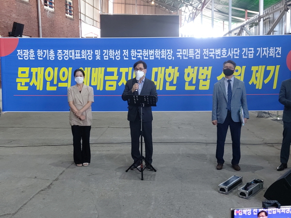이들은 23일 서울시 성북구 사랑제일교회(전광훈 목사)에서 긴급 기자회견을 열고 헌법소원을 제기하는 이유에 대해 설명했다. 특히 김학성 전 한국헌법학회장이 현장에 나와 직접 예배 금지의 위법성을 지적했다.