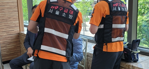 <현장에 도착한 경찰이 사건 경위를 조사하고 있는 모습>