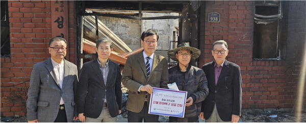 대표회장 권순웅 목사와 총무 강동규 목사, 사무총장 이석훈 목사는 지난 2일 경남 산청교회를 방문해 산청군기독교연합회(회장:김상은 목사)에게 산불 피해복구 성금을 전달한데 이어 오후에는 경북 청송의 성지교회(담임:김대근 전도사)를 방문해 산불 피해복구 성금을 전달하면서 위로했다. 이 자리에는 주다산교회 성도들도 함께 참석했으며, 이번 산불로 부속건물이 반파된 영덕 오보교회 김수호 목사에게도 성금을 전달했다.
