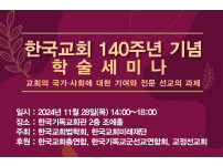 한국교회 140주년 기념 학술세미나, 11월 28일 연다