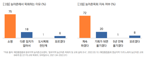 농촌 목회자 4명 중 3명, ‘소명’ 때문에 ‘앞으로도 목회 계속하겠다’