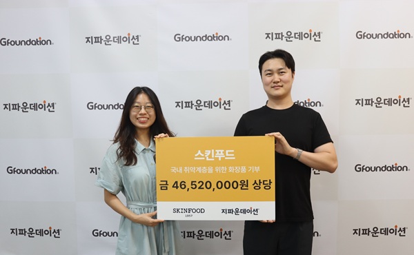 국제개발협력NGO 지파운데이션(대표 박충관)은 ㈜스킨푸드(대표 구도곤)가 국내 취약계층 여성을 위해 4천6백만 원 상당의 화장품을 기부했다고 11일 밝혔다.