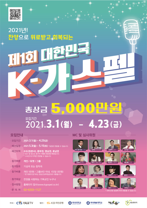 모집 기간은 2021년 3월 1일부터 ~ 2021년 4월 23일까지 CTS 홈페이지 (www.cts.tv) 또는 K-가스펠 홈페이지(www.gospel.co.kr)를 통해 응모 가능하다.