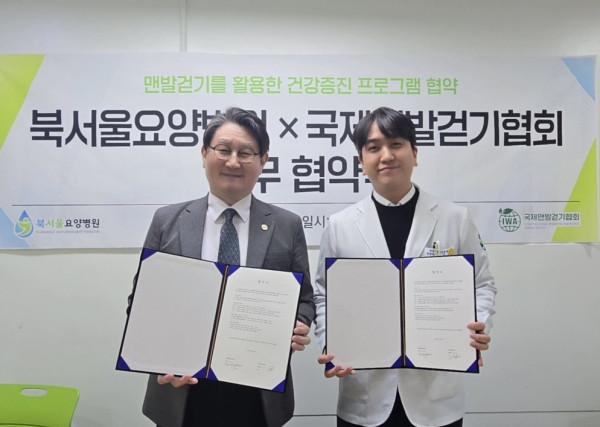 국제맨발걷기협회(회장 김도남)와 북서울요양병원(병원장 김우성)이 13일 북서울요양병원에서 맨발걷기를 활용한 건강 증진 프로그램 공동 개발 및 운영을 위한 업무협약(MOU)을 체결했다.