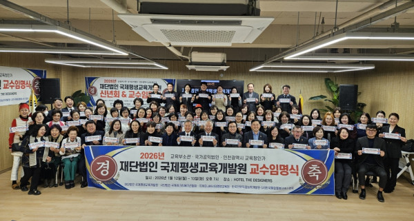 재단법인 국제평생교육개발원(이사장 이광재 목사)12~13일 인천 호텔 더디자이너스에서 ‘2026 신년회 및 교수임명식을 열고 평생교육의 공공성 강화와 국제 교육 협력 확대를 위한 비전을 공식 선포했다. 이번 행사는 재단의 지난 성과를 점검하는 동시에, 향후 글로벌 평생교육 플랫폼으로 도약하기 위한 방향성을 공유하는 자리로 마련됐다.