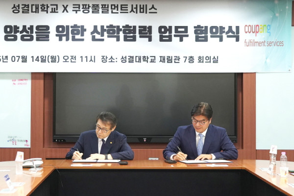 성결대학교(www.sungkyul.ac.kr, 총장: 정희석)와 쿠팡의 물류계열사인 쿠팡풀필먼트서비스(Coupang Fulfillment Services, 이하 CFS)가 7월 14일(월), 물류 분야 전문 인력 양성을 위한 산학협력 업무협약(MOU)을 체결했다. 협약식은 성결대학교 재림관 7층 회의실에서 진행됐으며, 정희석 총장과 정종철 CFS 대표이사를 비롯한 양 기관 주요 관계자들이 참석해 협력의 의미를 더했다.
