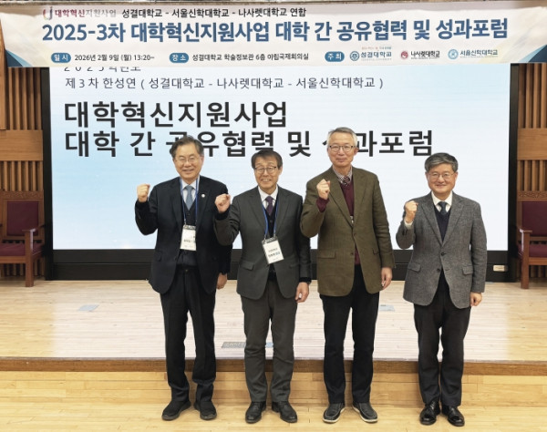 성결대학교(www.sungkyul.ac.kr, 총장: 정희석)가 나사렛대학교, 서울신학대학교와 함께 ‘대학혁신지원사업 대학 간 공유협력 및 성과포럼’을 2월 9일, 성결대학교 학술정보관 6층 야립국제회의실에서 개최했다. 이번 포럼은 대학혁신지원사업을 통해 추진된 교육혁신 성과를 공유하고, 대학 간 협력 모델을 확산하기 위해 마련됐다.