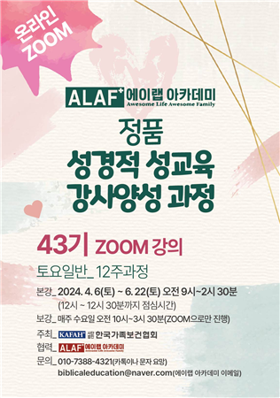 한국가족보건협회, 성경적 성교육 강사양성 과정 43기 줌 강의 개강