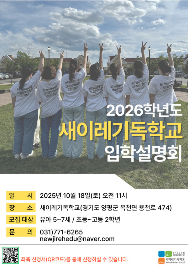 예수 그리스도의 성품을 닮은 다음 세대 리더 양성에 힘쓰는 새이레기독학교(교장 송미경 목사)가 오는 18일 오전 11시 경기도 양평군 옥천면 본교에서 ‘2026학년도 입학설명회’를 개최한다.